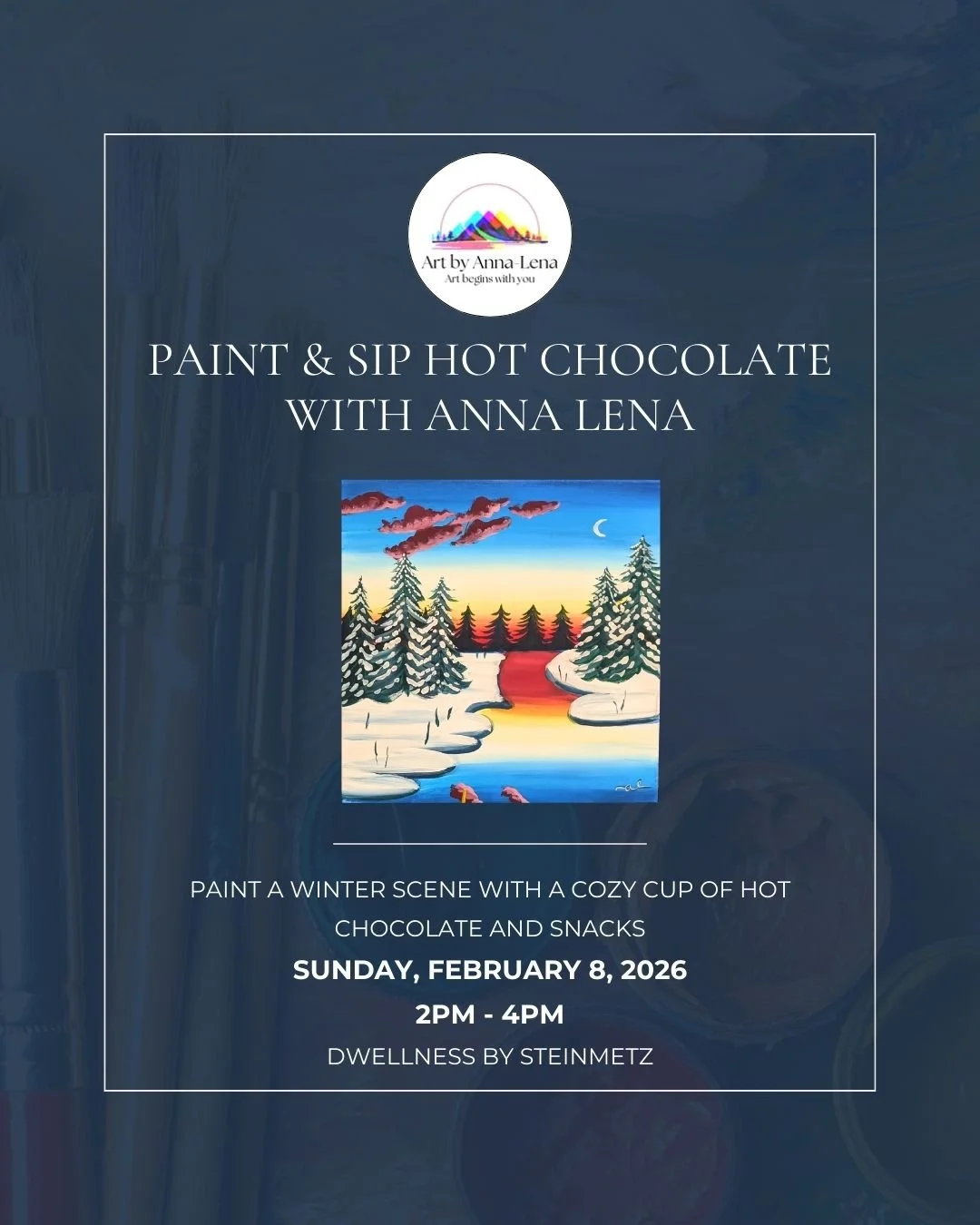 Join us for a super fun in-person afternoon where you’ll paint, sip delicious hot chocolate, and unleash your creativity alongside professional artist Anna-Lena!